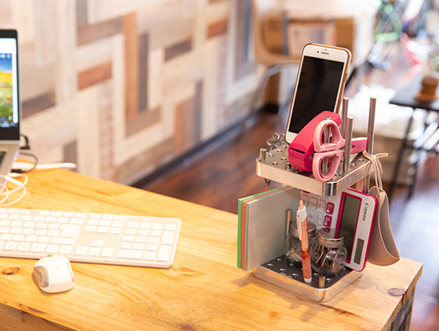 【OMO-TAI】で道具類をまとめて「縦置き」することで、机の上がこんなにスッキリ!