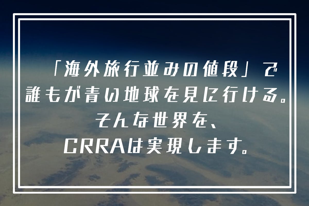 青い地球が気軽に見れる世界へ…人類の価値観の変化をCRRAが加速させていきます!