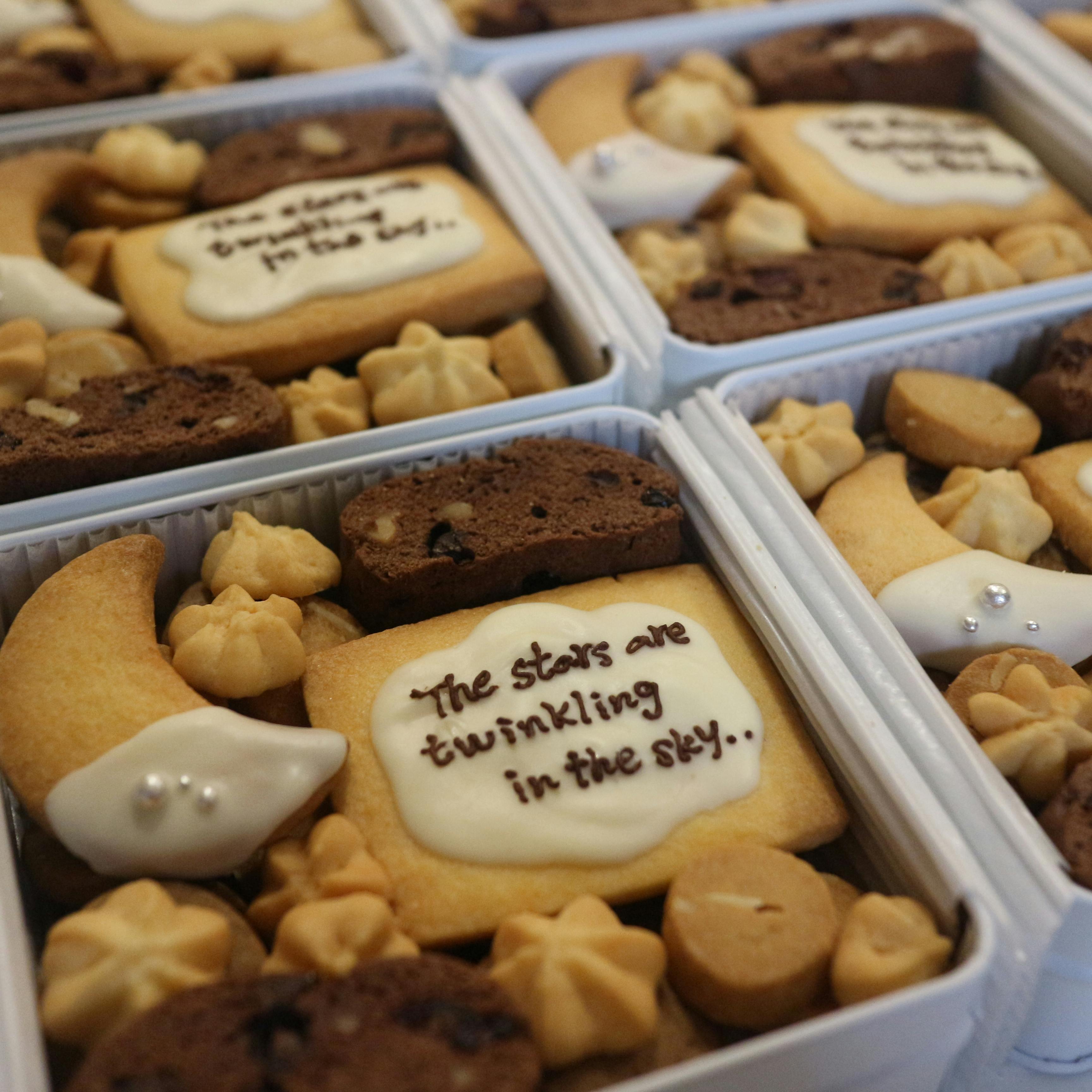 お礼のお手紙とクッキー缶、スコーンの詰め合わせを送らせていただきます。