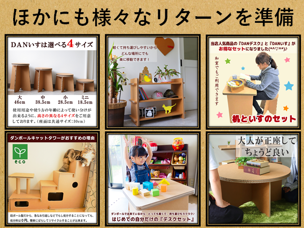 個人向けに段ボールグッズを販売して数十年がたちますが、購入していただいたお客様から驚きや喜びのお声を多くいただいております。