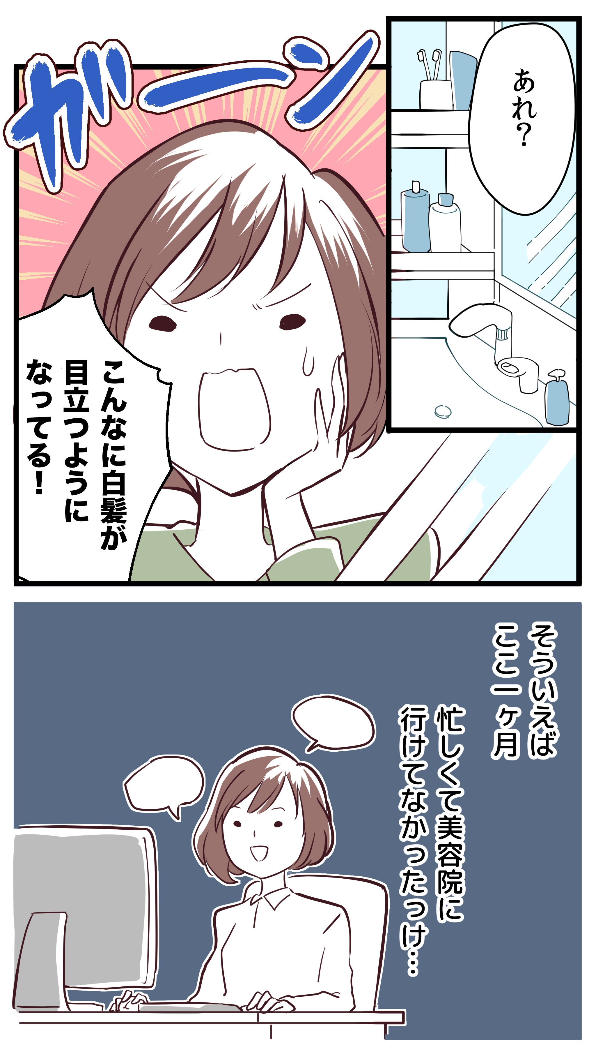 美容院にいるだけでなく、行き帰りの時間もいれると相当な時間を白髪ケアのために費やしていました。