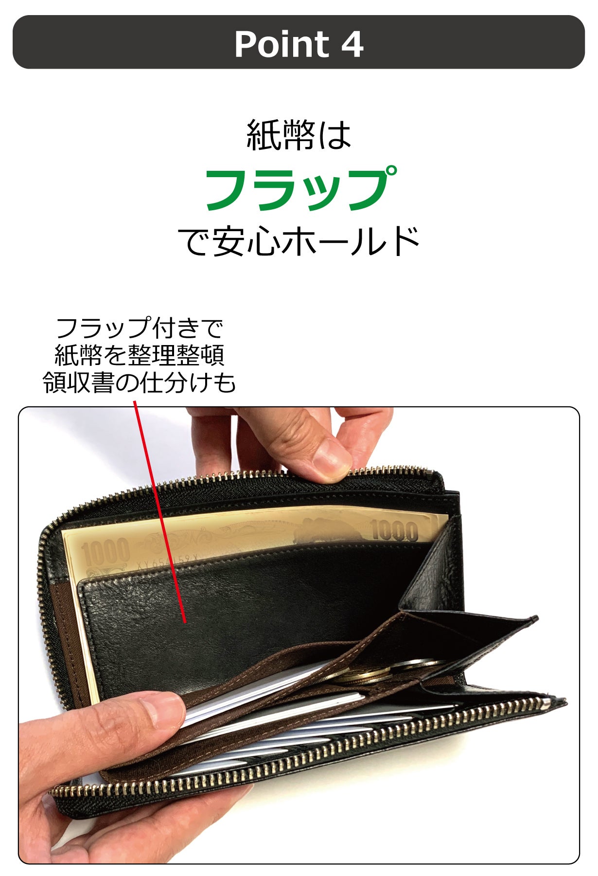 それは「使用時の快適さ」です。どんなに見た目が良くても、実際に使ってみたら小銭が落ちてしまう、紙幣やカードが取り出しづらい、ファスナーが閉まらないなど、使い勝手が悪くては台無しです。私共はご購入頂いた方に満足して頂ける「こだわりのモノ創り」をコンセプトに商品開発をしています。