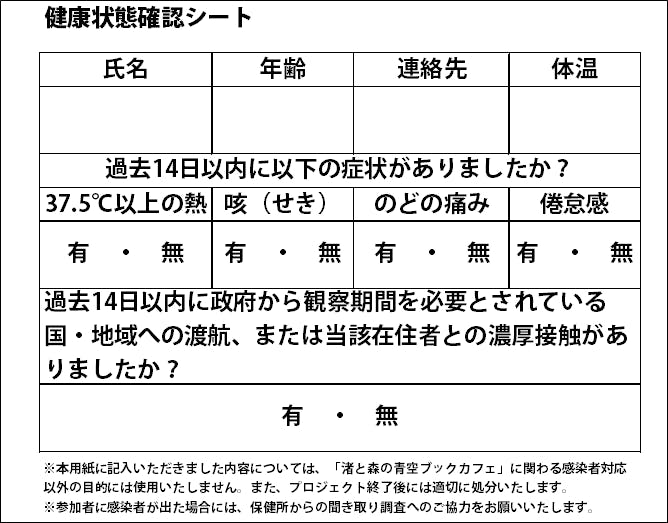 ・利用前に、以下の健康状態確認シートにご記入いただきます。