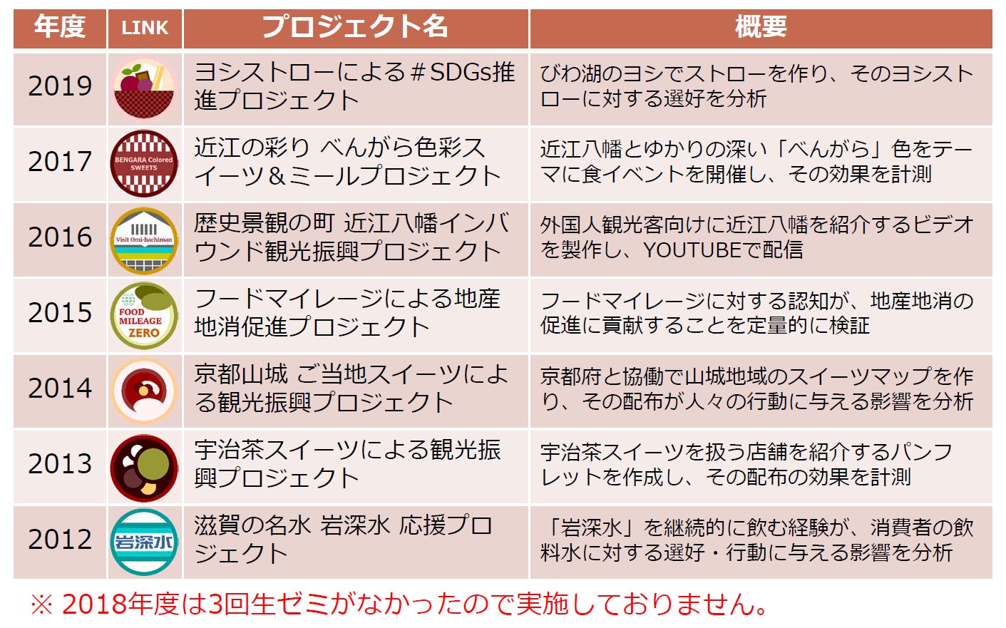 当ゼミでは、これまで7回にわたって、地域連携・課題解決型のプロジェクトを立ち上げ、集団的な研究活動を行ってきました。