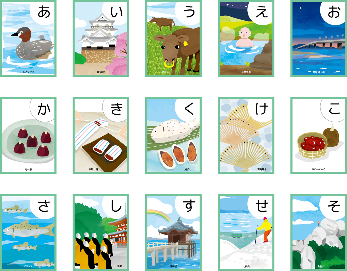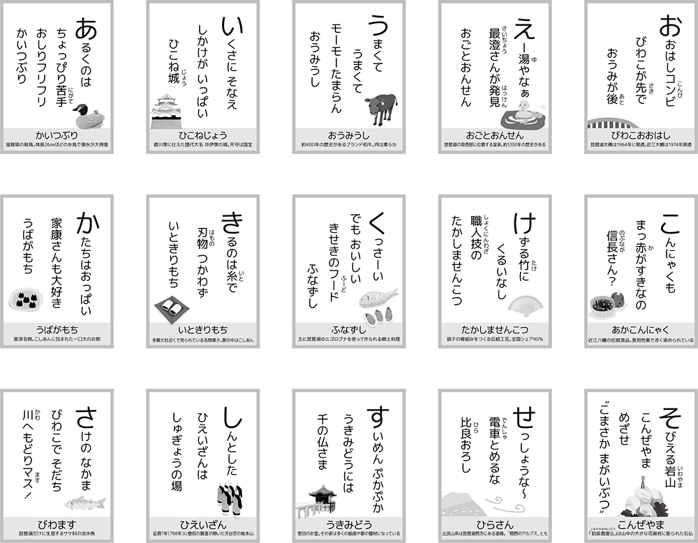 このかるたで遊ぶことで、滋賀の子ども達が自分の住んでいる滋賀について知り、滋賀を愛する心を育んでくれることを願っています。