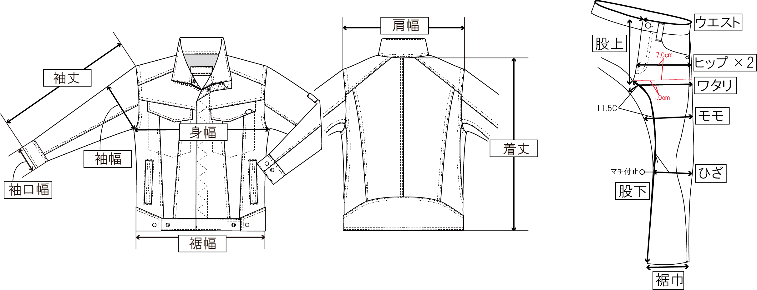 ジーンズとデニムウェアは別々でお好きなサイズをご支援下さいね。例えば、ジーンズはLサイズで、ジャケットはLLサイズという感じでもOKです!もちろん、ジーンズだけでも、デニムジャケットだけのご支援もOKです!