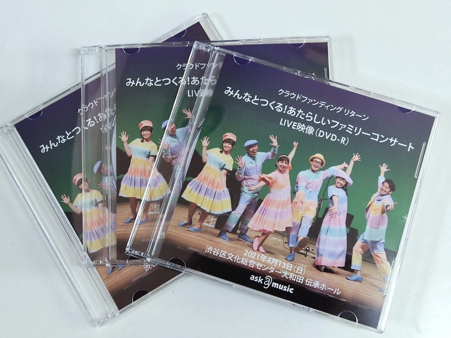 2021/07/12 13:19【活動報告】コンサート映像DVDの発送が始まりました!6月13日(日)に開催した「みんなとつくる!あたらしいファミリーコンサート」のDVDが完成し、本日より発送が始まりました。「みんなとつくる!あたらしいファミリーコンサート」のリターン「DVDコース」に申し込んでいただいた皆様、大変お待たせいたしました! まもなく、お手元に届くと思いますので、楽しみに待っていてくださいね。今後、アスク・ミュージックのYouTube公式チャンネルでは、今回のクラウドファンディングの取り組みをまとめた動画やコンサートのダイジェスト映像なども公開していく予定ですので、ぜひチェックしてください!アスク・ミュージック公式チャンネルのチャンネル登録は…https://www.youtube.com/user/sinkukan7?sub_confirmation=1メンバーシップ「アスク・ミュージック サポーター」の登録は…https://www.youtube.com/channel/UC9WYPe8SuMhaaHbFg03Pxjg/joinまた、新沢としひこと木山裕策さんの新ユニット『CHOPSTICKS』のクラウドファンディング【CHOPSTICKS(新沢としひこ&木山裕策)初めての有観客LIVEを開催したい】に挑戦中です! こちらのプロジェクトもぜひチェックしてくださいね。https://camp-fire.jp/projects/view/370497 もっと見る