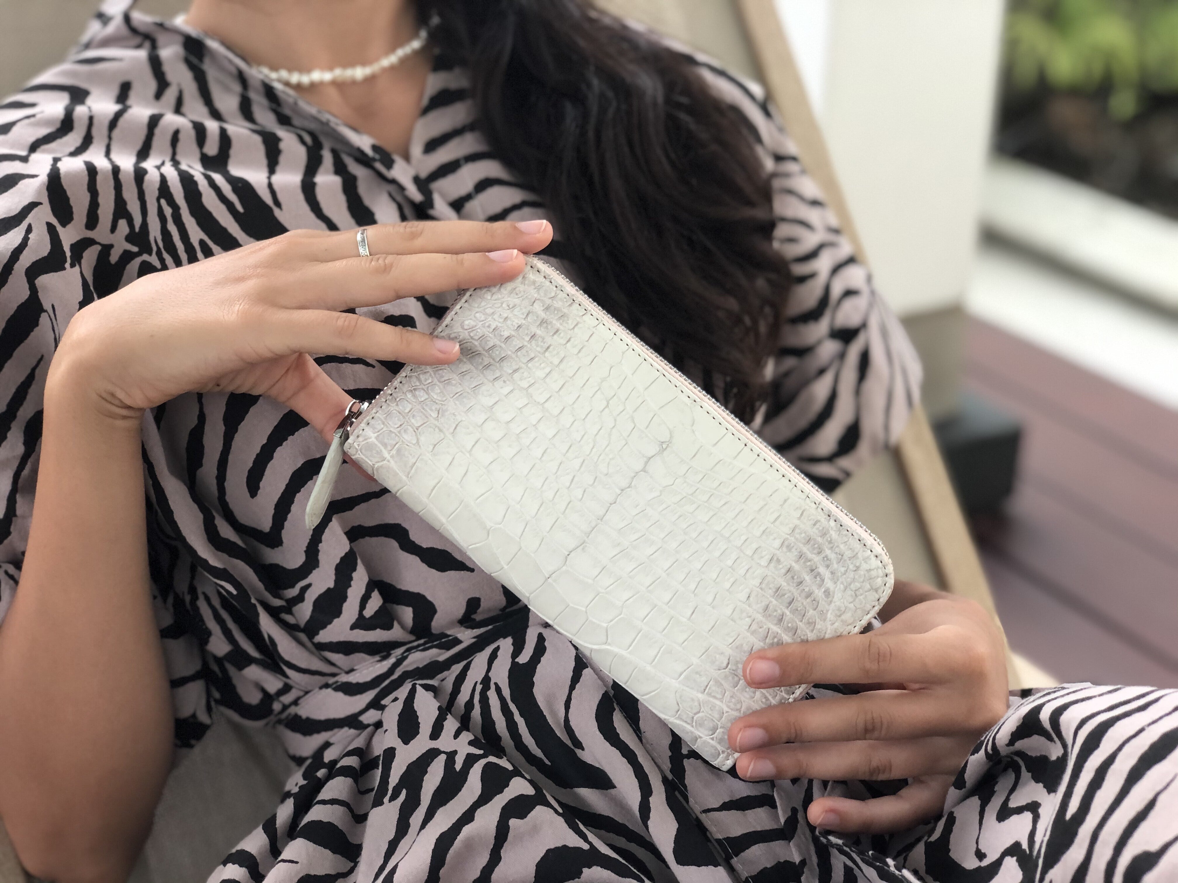 艶やかなクロコダイルが女性の手元に上質な品格を醸します。