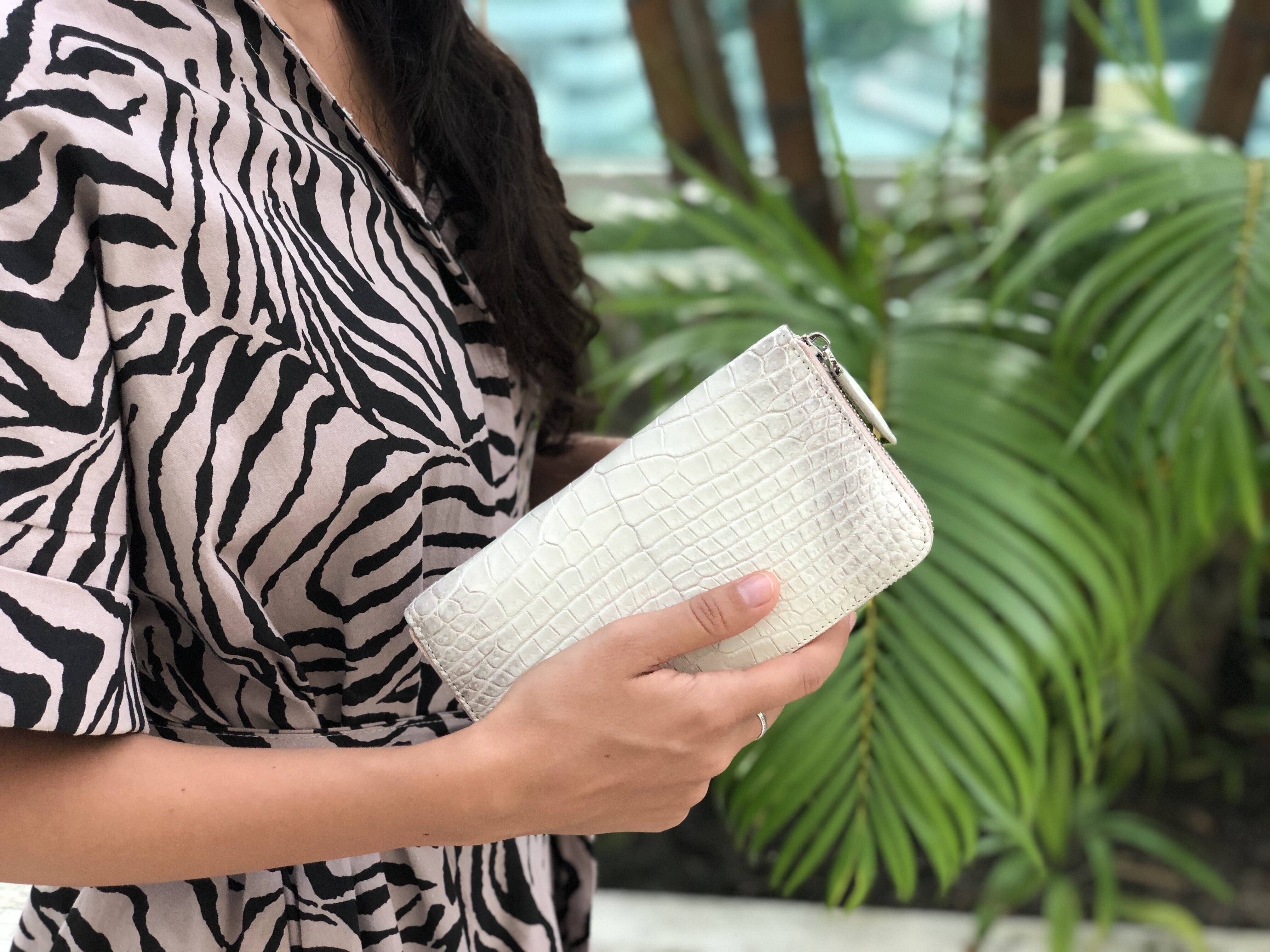 タイ原産のシャムワニ原皮を使用。