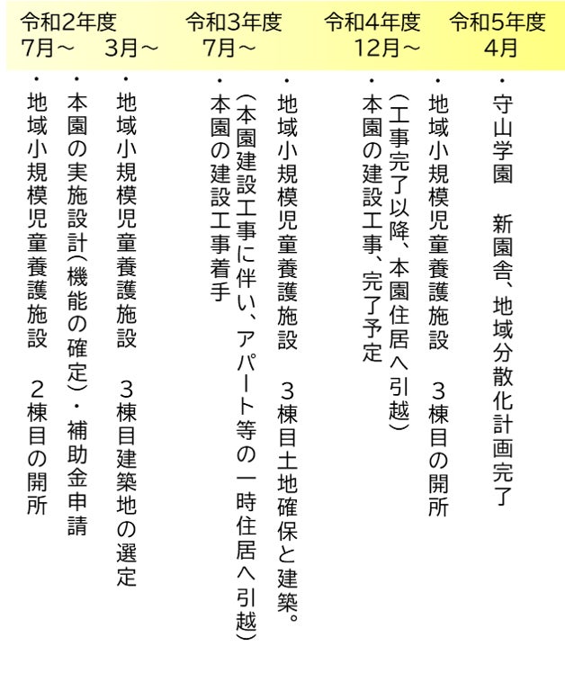 この度、建て替えを機に一時保護の専用棟を作ることにより、その問題を解消し保護を必要とする子どもを受け入れらるようにしようと計画しています。一時保護所開所につきましては、地域小規模児童養護施設3カ所目開所後の予定をしています。