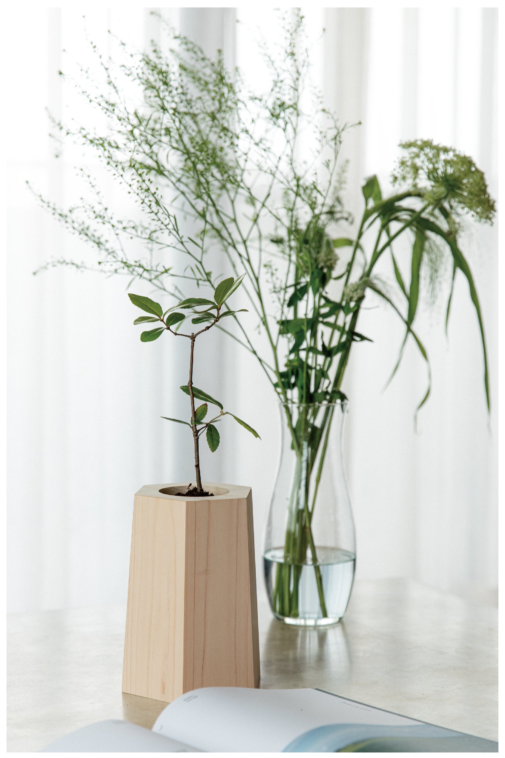 そして、田辺市で育てられた国産ヒノキから、MODRINAEの鉢と、お戻しの製品を制作します。