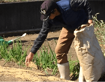 2020年3月、東寺の農業者 森田幹雄さんの協力を得て、秋の収穫時期まで栽培をお願いしました。ごぼうの栽培は初めてということでしたが、ごぼうが真っすぐに育つように1mほど深く畑をスコップで掘り起こしてから、ごぼうの生育に大切な肥料を混ぜ畝を作っていただきました。