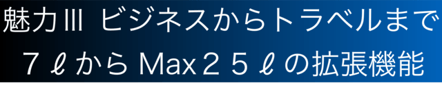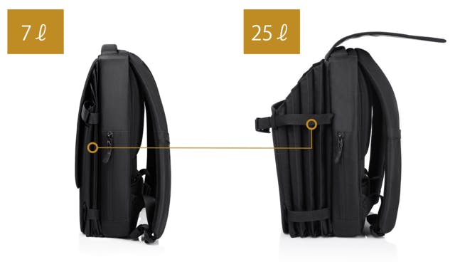通常の拡張型バックパックと異なり、段階的に必要な分だけ拡張していくため、無駄にだぶついた印象を与えることもありません。