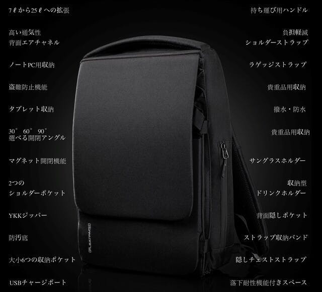 日常からビジネス、アウトドアまで様々なシーンを快適にする機能が詰まっています。あらゆるものを収納できるスペースを確保し、洗練されたスタイリッシュなデザインがあなたの日常を便利に彩ります。