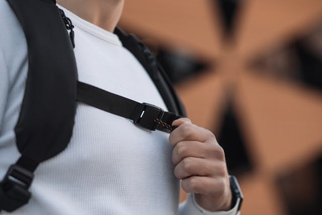 一般的にバックパックには、荷重を安定させるため、ショルダーベルトにチェストストラップが付属しています。