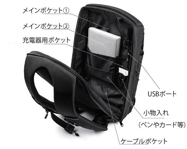 メインポケットとは別に貴重品を入れるための背面ポケット、また背中に当たる部分にも隠しポケットを配しており、日常利用だけでなくパスポートなど貴重品が不安な海外旅行にも対応可能です!