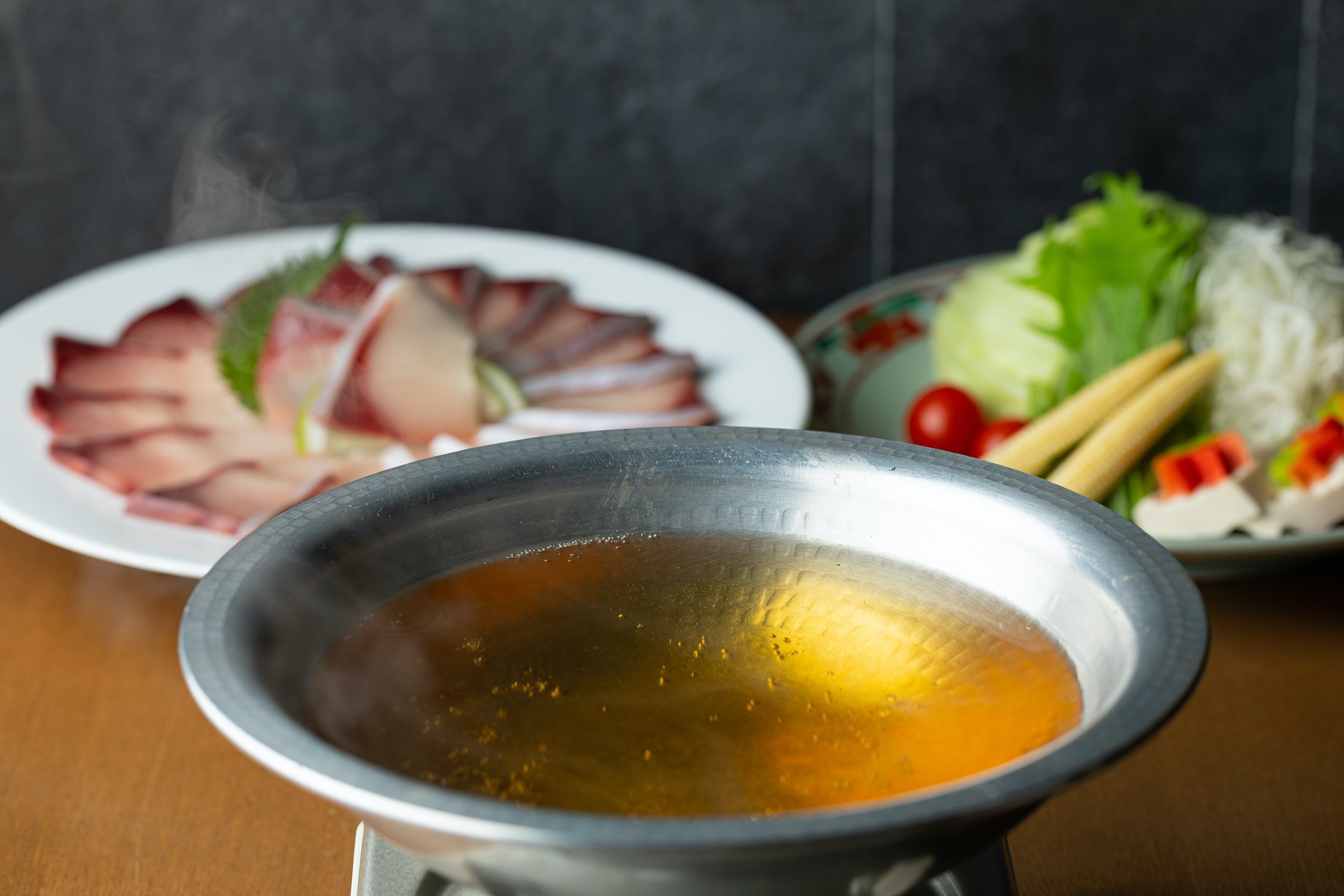 ◎『どん薩摩の黄金だし』は店舗で使用しているだしをそのままパック詰め。鍋に開けて温めるだけで出来上がりです。まずはだしの旨味のみでしゃぶしゃぶをお楽しみください。