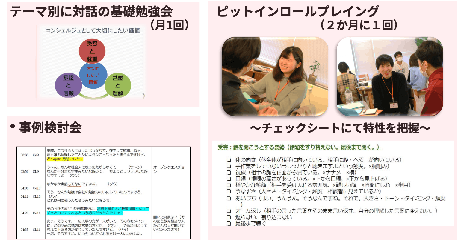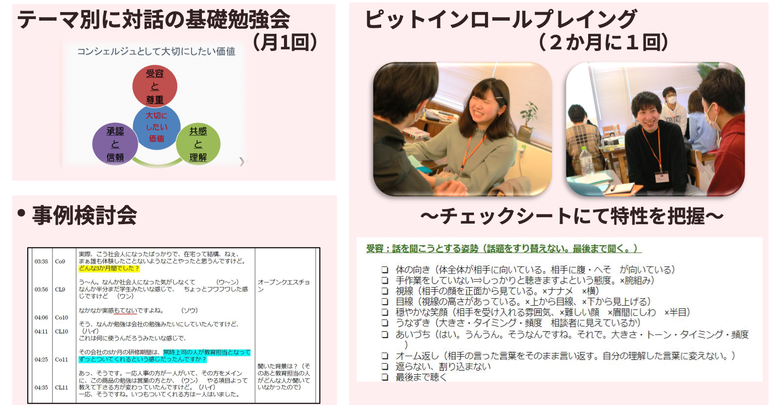 また、コンシェルジュは毎月トレーニングや勉強会を実施し、コンシェルジュ同士でのスキルや知識をアップデートさせています。