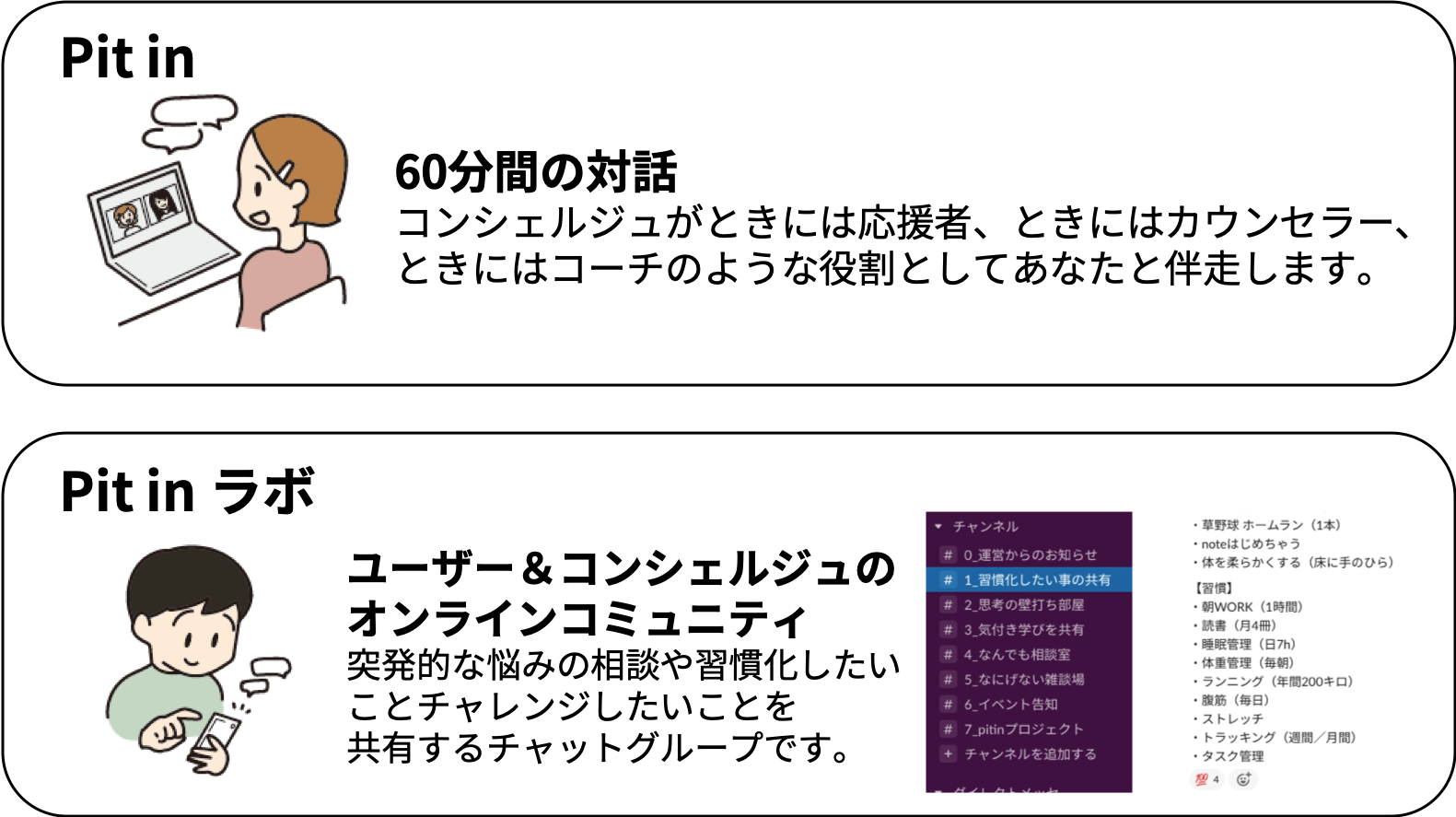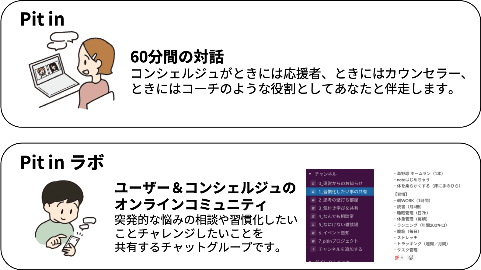 Pit inは継続的に頭と心を整理する、オンライン1on1サービスです。