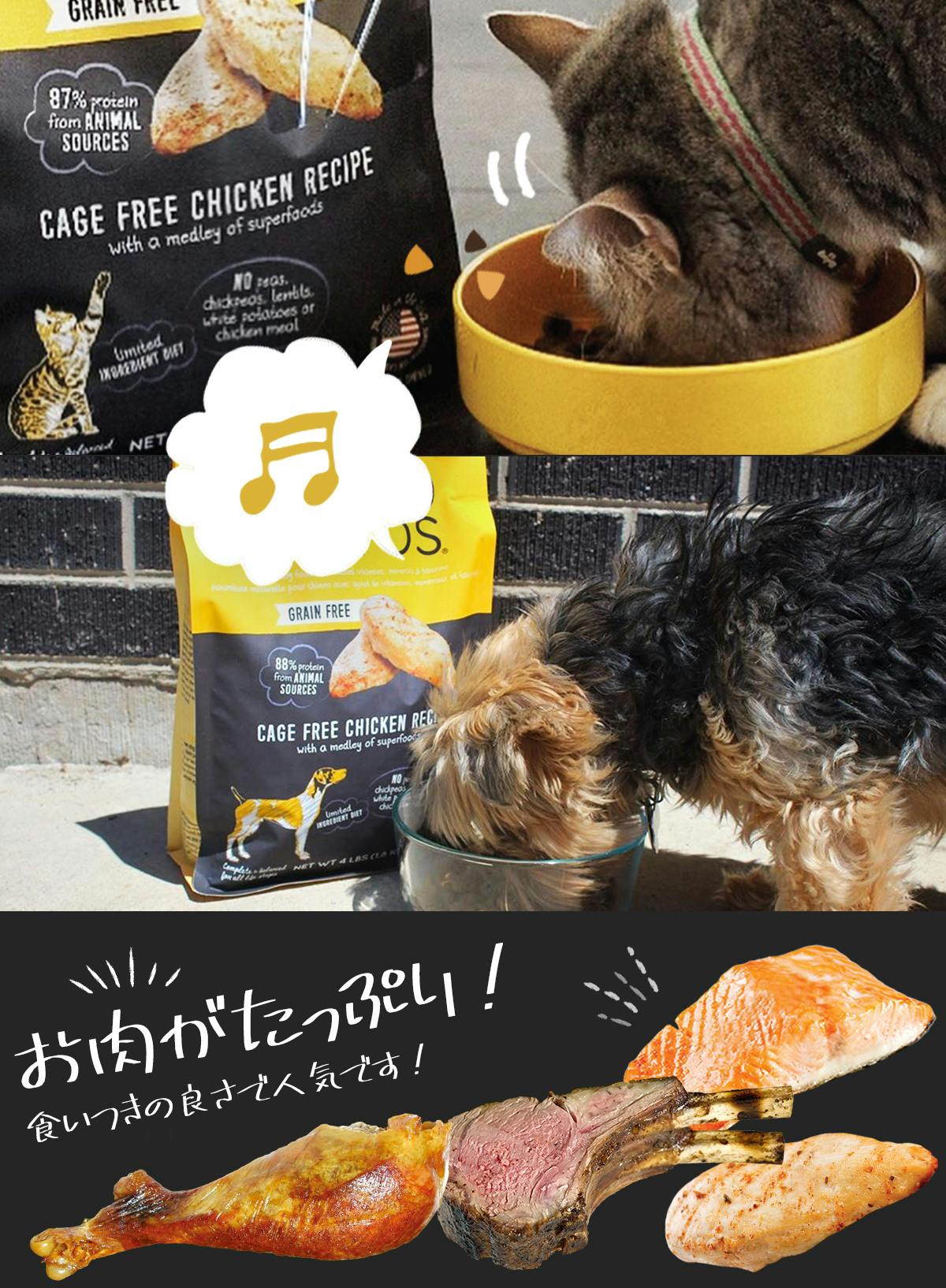 新鮮なお肉をたっぷり使っているから、ワンちゃん猫ちゃんが喜ぶ美味しさなんです。