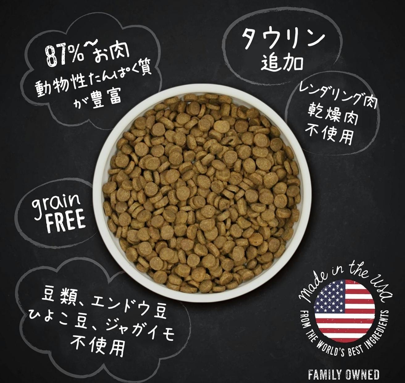 レンダリング肉はもちろん、ミール(粉肉)も使っていません。