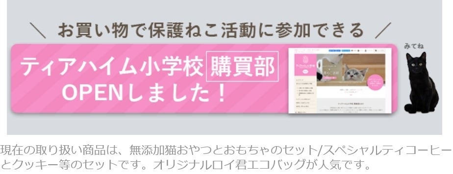 ティアハイム小学校購買部という通販部の立ち上げ、そして猫砂やフードといった寄付商品の販売、これらによる安定した運営が見込める施設を目指したリスタートです。