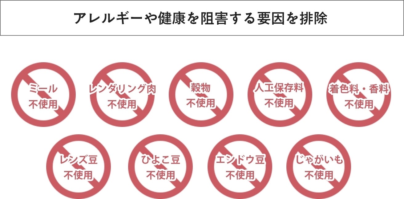 粉末肉(ミール)、レンダリング肉・魚 不使用