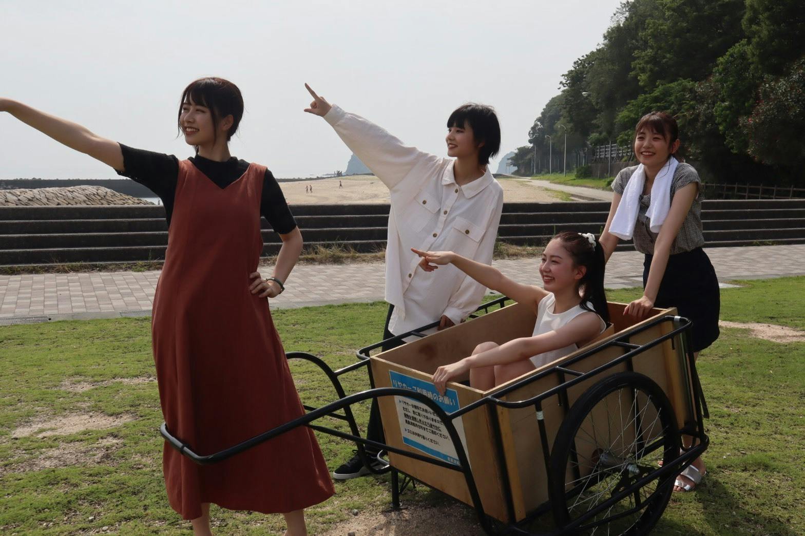 Vo.武田雛歩(画像左中)、Dr.脇田穂乃香(画像右中)、Ba.星川遥香(画像左端)、Gt.濵邊咲良(画像右端)