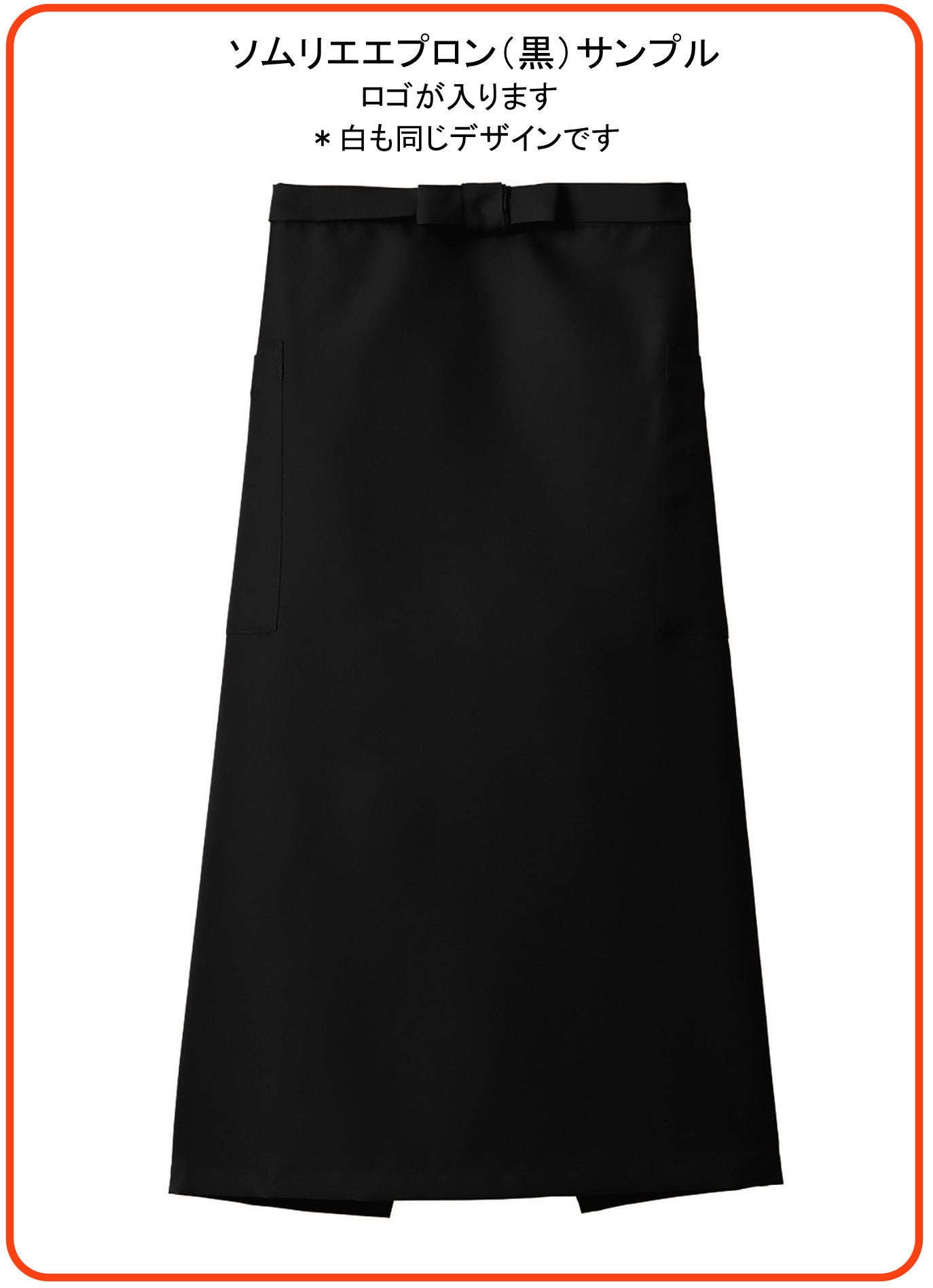 「僕のフレンチ」ロゴ入りオリジナルソムリエエプロン(黒と白色)2枚を当日お渡しします。