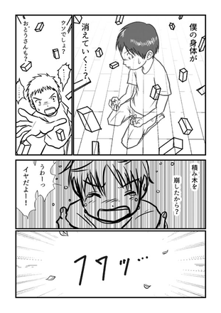 引き抜いた「命の積み木」は、バラバラに崩れてしまい、同時に、男の子の体が・・・!?