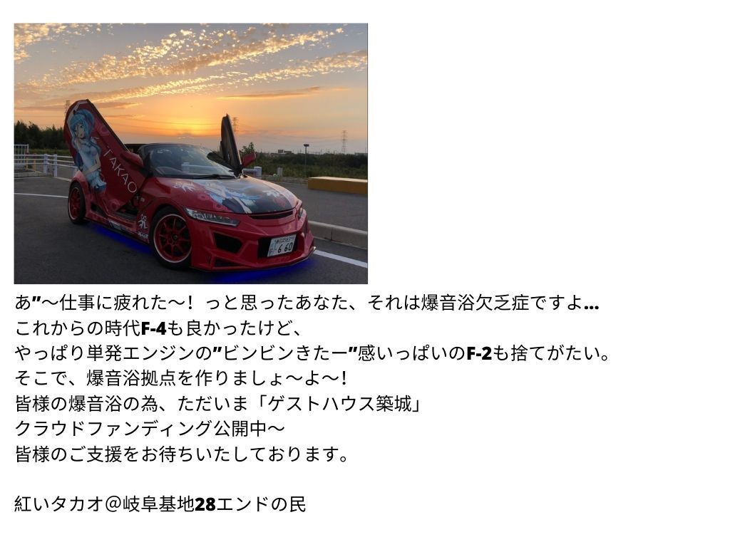 はじめまして。 最近築城基地から40分ほどのところに越してきました。 基地のそばでF2を見ながらコーヒー飲むとか、キャンプできるって最高ですね^^ 完成を楽しみにしてます。