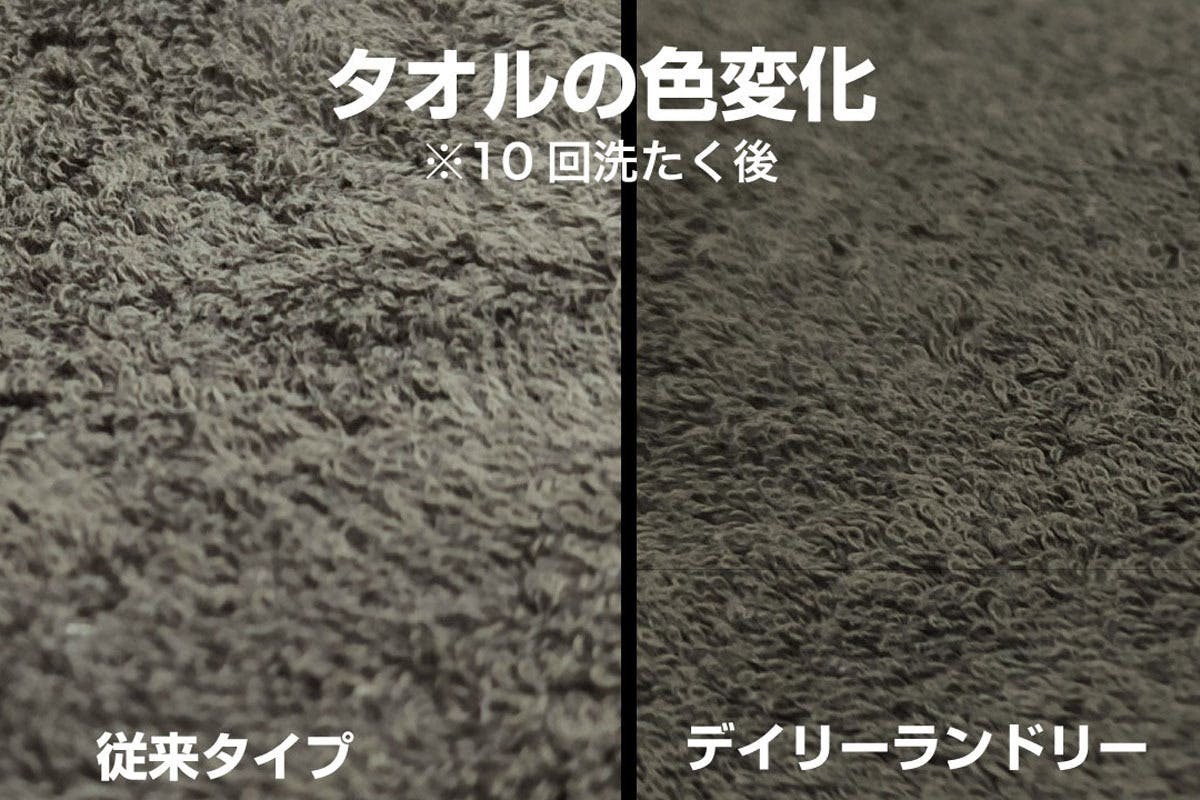 アルカリ剤を入れず、すすぎ性能が高いので、柔軟剤なしでもタオルのふわふわ感を保つことに成功しました。汚れ落ちや衣類、タオルの肌触りにきっと驚いていただけます。