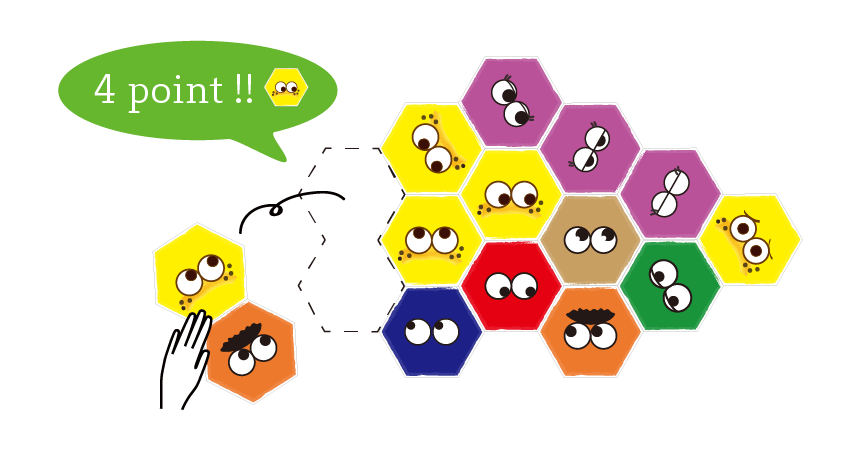 自分のタイルを同じ色のタイルにくっつけてポイントゲット!