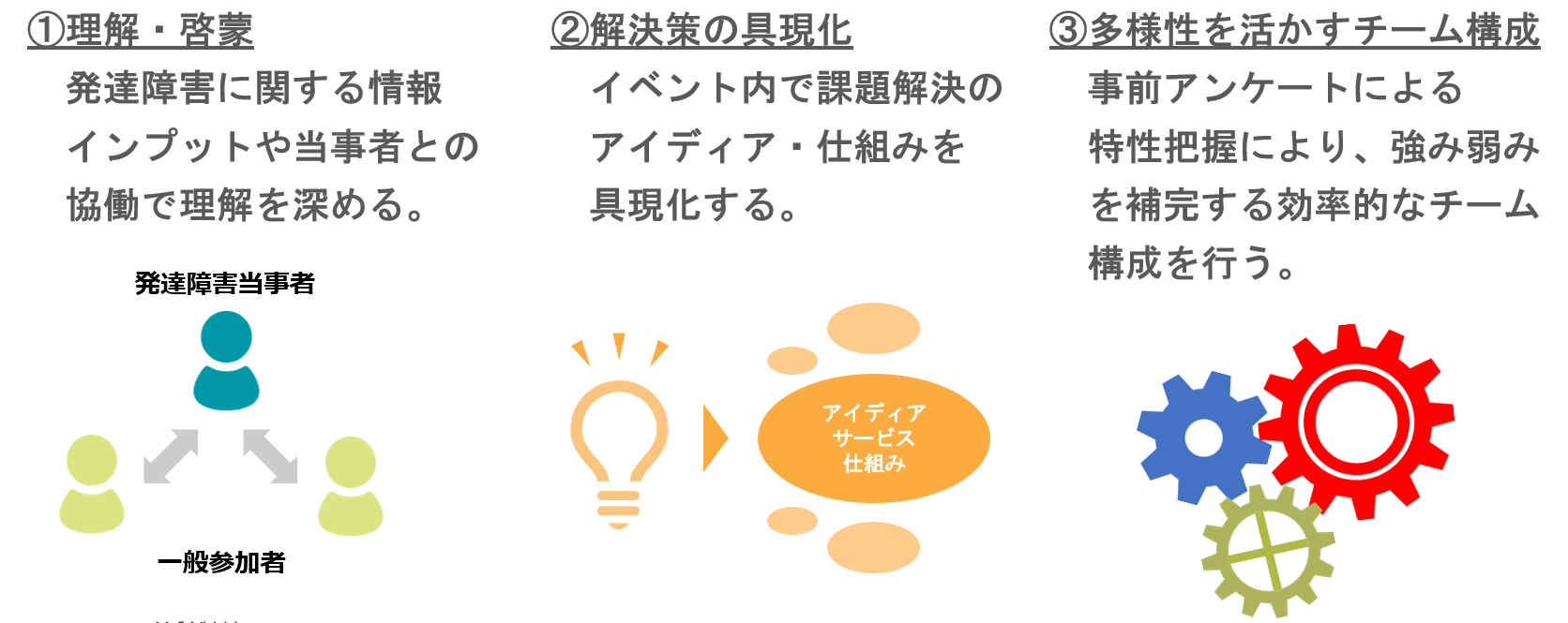 の2つを同時に実施でき、発達障害もグレーゾーンもそれ以外の方も含めて「誰もが過ごしやすい社会」の実現に近づくと考えています。