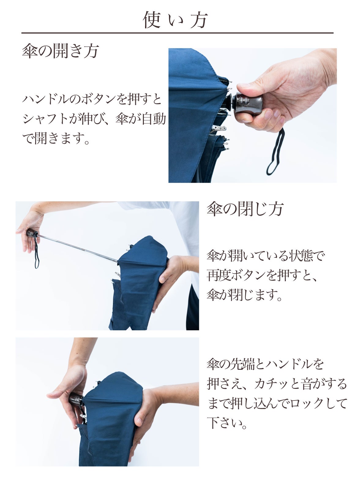 A.閉じるときに、両手で抑えて縮める際には力が必要になります。過去に従来の自動開閉折り畳み傘をご使用の方ですと問題ございませんが、自動開閉が初めての女性ですと少し負担に感じるかもしれません。
