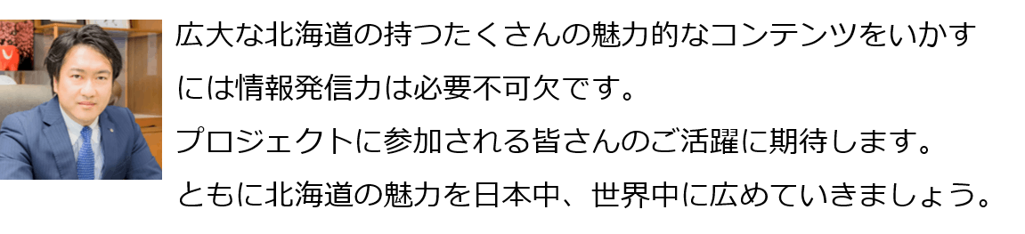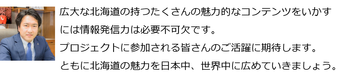 学生ならではのパワーやクリエイティビティで、北海道の“イマ”を伝えることで、地方創生への大きな原動力となると信じています。