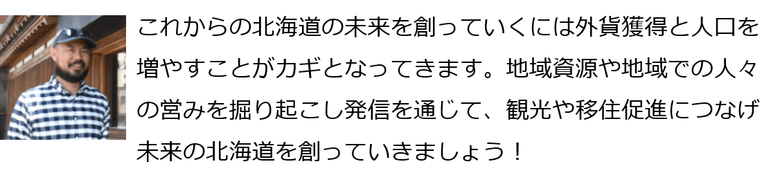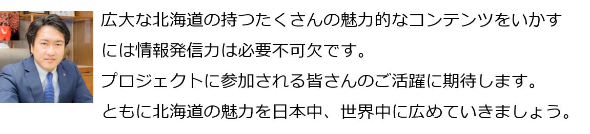 北海道を大好きな人が自分たち自身で情報を発信し、それにより北海道経済が豊かになる、好きなことをして生活ができるーそんな未来を実現すべく、今回の企画を立ち上げました。