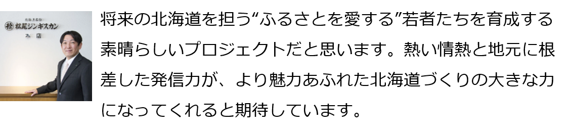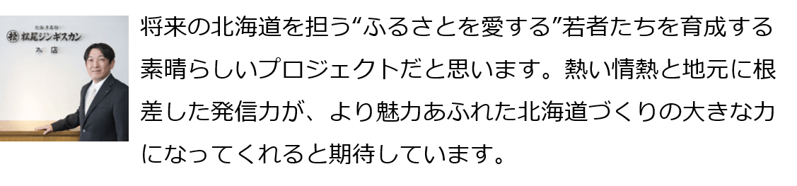 北海道の発信の未来を担う、想いをもった学生を応援したい。