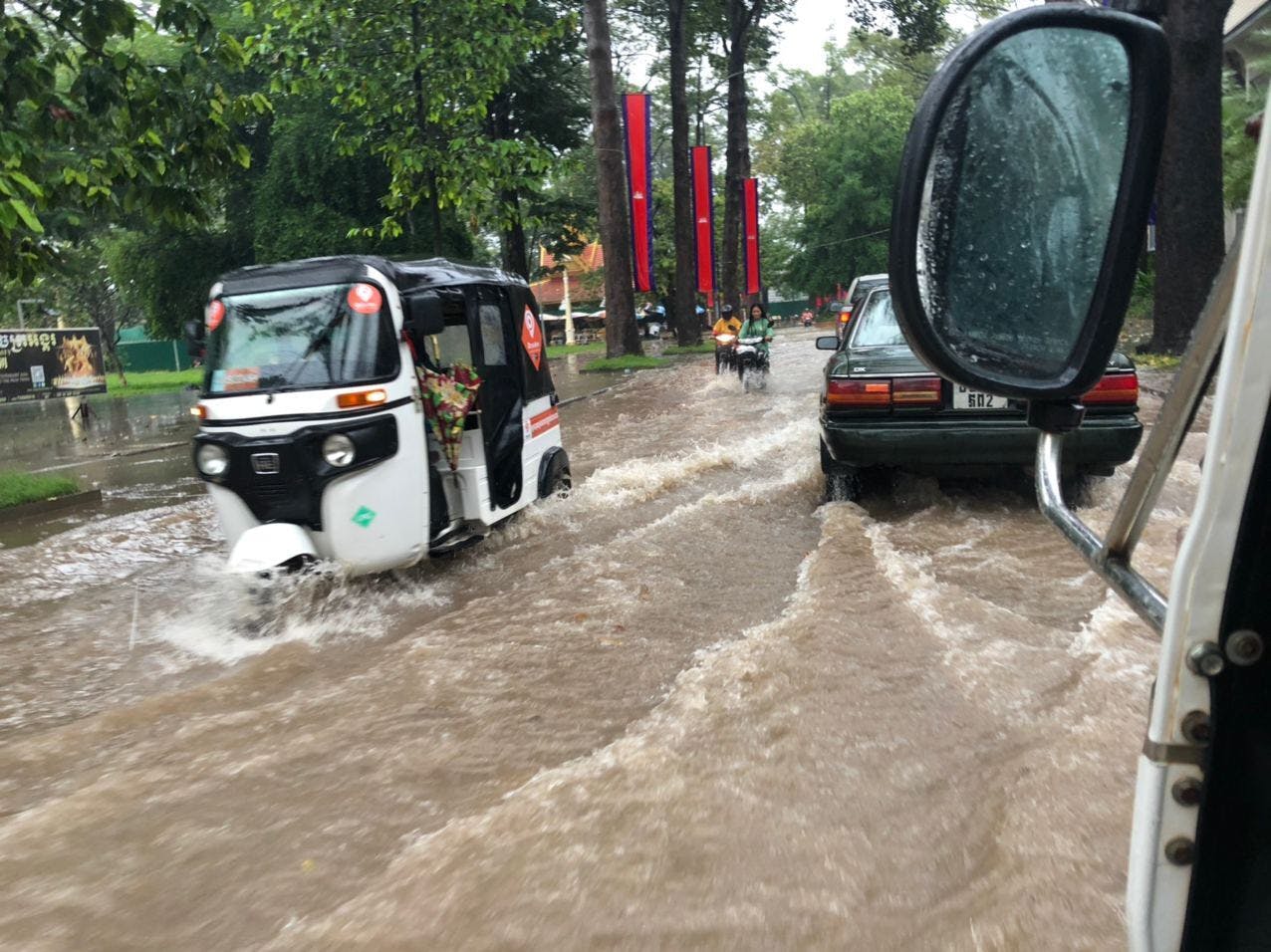 2020/10/29 10:51こんにちは、Agribuddyの中野です!本日で公開から4日目ですが、プロジェクトの開始前から私やBuddyは農村の被害状況の調査を行ってきました。しかし、一部の農村は道が川になって通れない、橋が沈んで先に進めないなどの様々な問題で調査ができていませんでした。そしてここ数日晴れ間が続きやっと農家に会い調査に行けると思った矢先に台風の到来、今現在は市街地が一部冠水している程度で、大きな問題はないのですが、農村部で今後大きな問題にならないのか心配です。Agribuddyとして今後も『農村部の経済基盤を再構築』に向けた準備を行って行きますので、よろしくお願いします!写真は2020/10/29のSiem Reap 市内の様子です。 もっと見る