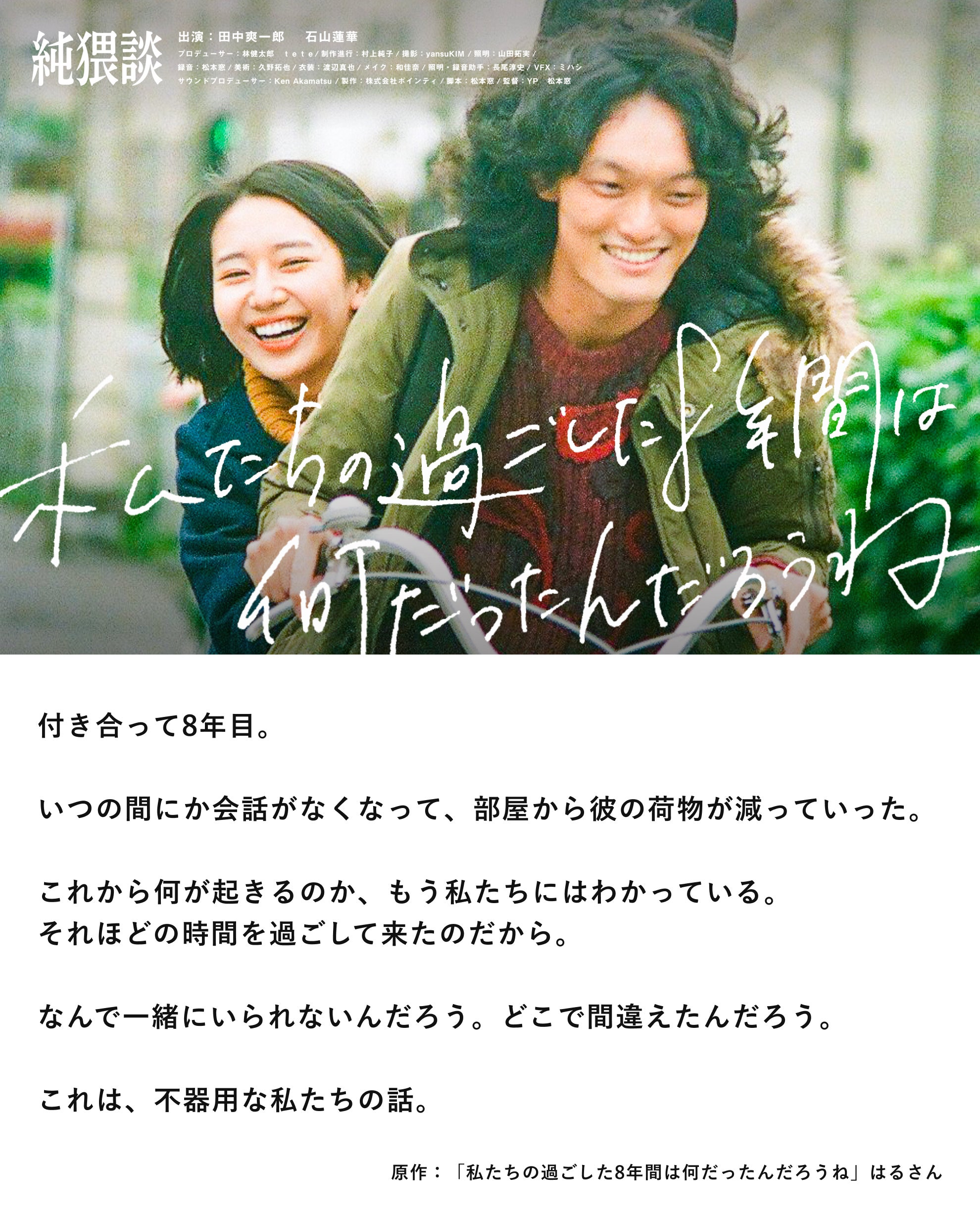 野島健矢さん、まつきりなさんに出演いただいた短編映画『触れた、だけだった。』を公開したのは2020年のバレンタインデーでした。