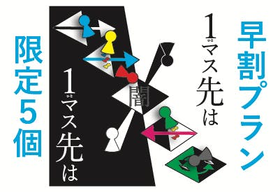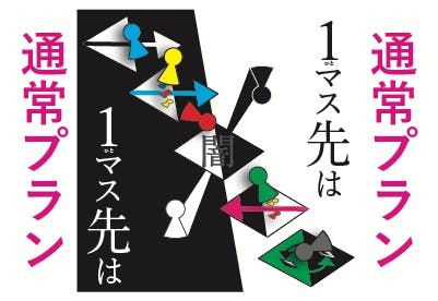マスには様々な効果が描かれており、その効果はそのマスを裏返してみないとわかりません。相手を惑わす効果かもしれないし、自身を不利にする効果かもしれません。(マスの効果はこのページの下をどうぞ!)