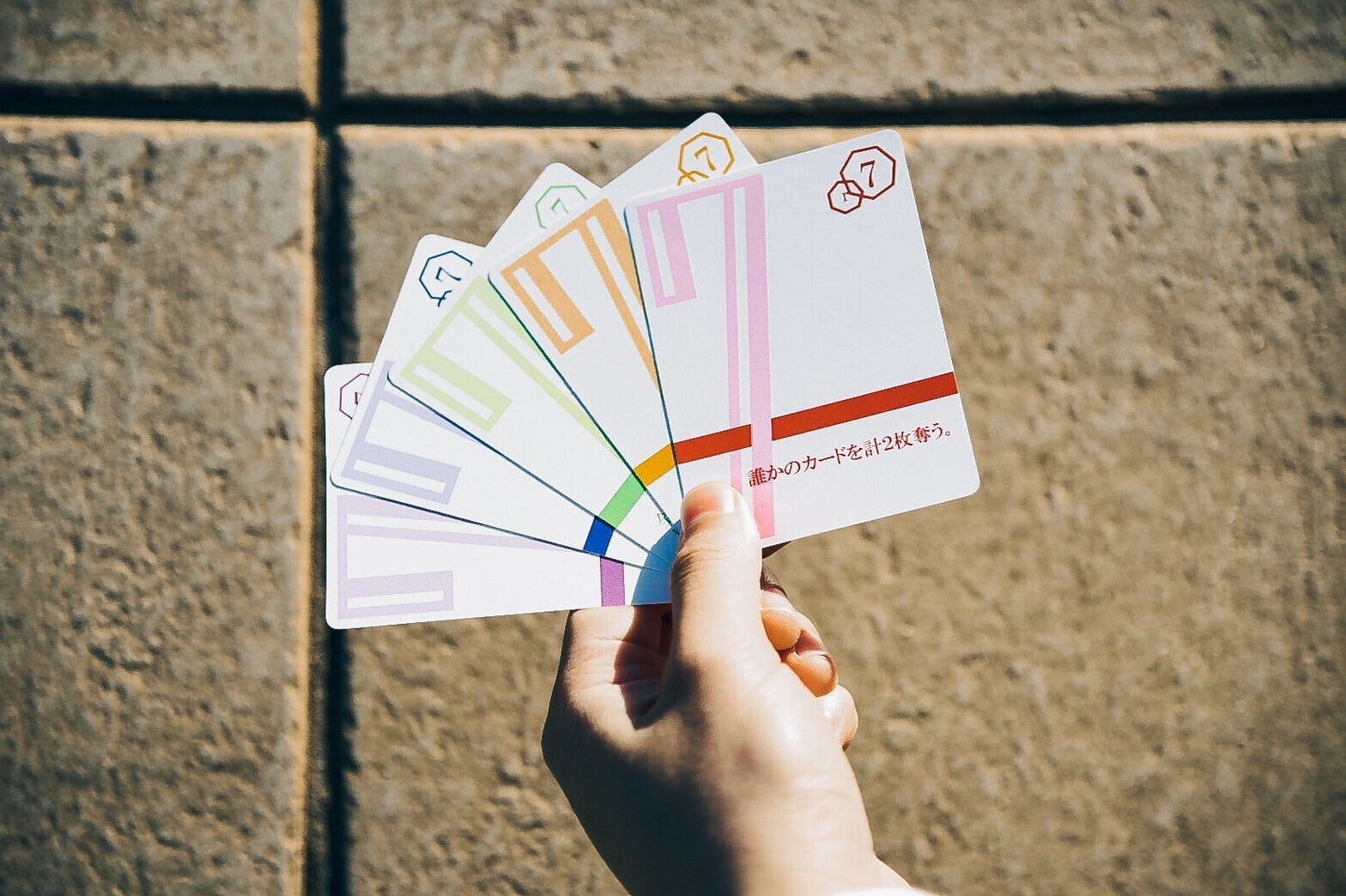 このゲームは、0~7の数字が書かれた5色のカード(計40枚)を使います。2〜4人用を想定しています。