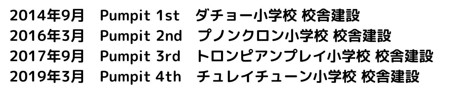 私たちPumpit5thは、約500万円の資金を集め、5校目の小学校、ポーセレイ小学校に校舎を建設することを目指しています。