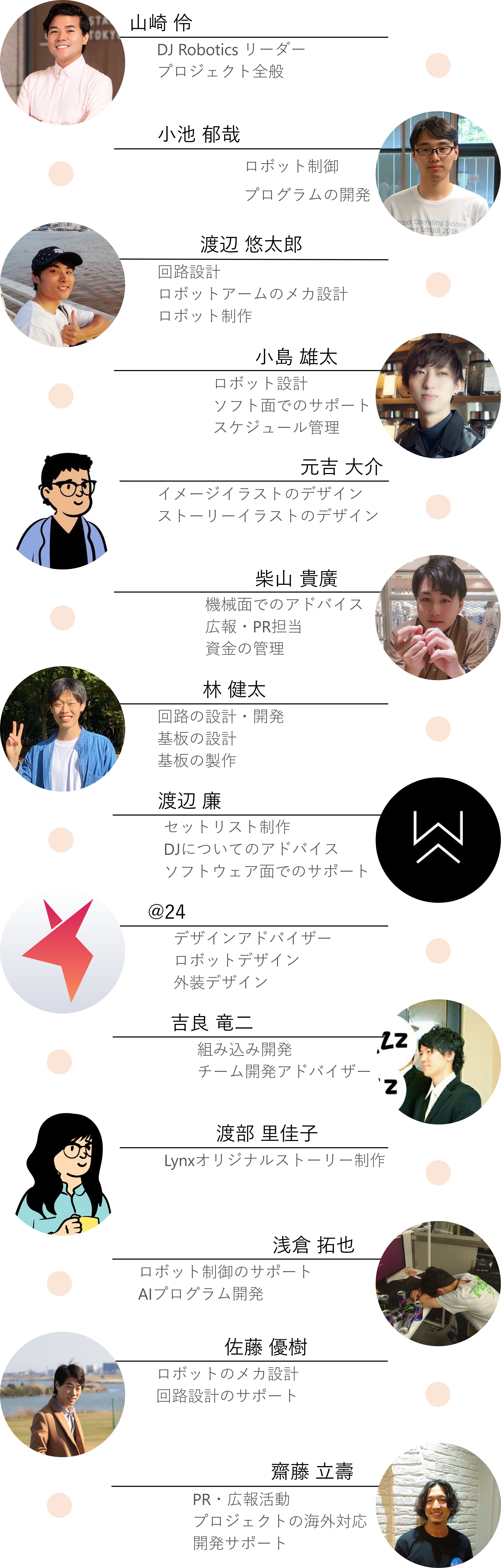 これまで、直接人の役に立つようなロボットを目標に卒業研究などをしていました。しかし、テレビドラマの撮影で使用するピアノ演奏ロボットの制作に参加した際、技術よりも感動に対しての反響が大きく、「ロボットは人の心を動かす」ということに気づきました。そこで、ロボットと人が一体となって「わくわく」「感動」が出来るテーマパークを作ることで、「ロボットと人が共存するような社会」の実現を目指します。そのテーマパークの第一歩として『世界を回す』様なDJロボット『 Lynx 』 を制作します!