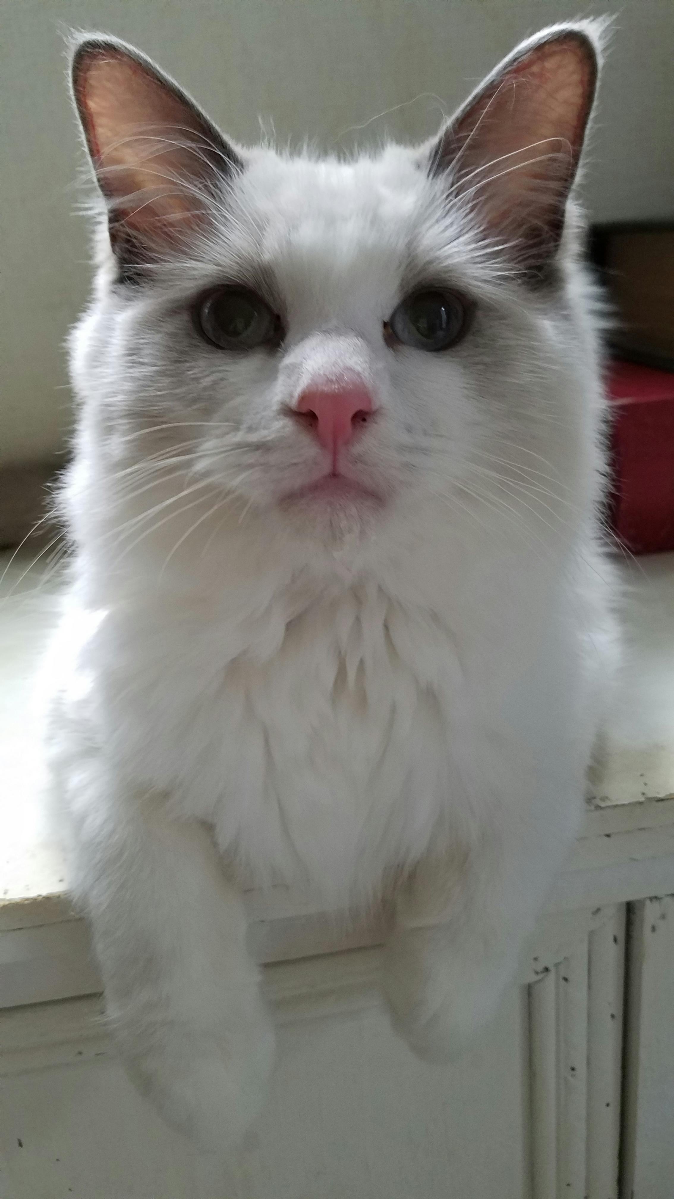とのまるです。ラグドールという大型猫種の男の子です。誕生日は2020.5.15でまだ5ヶ月です。性格はシャイで甘えん坊らしいです。最初の飼い主さんはぼくでアレルギーが出たから一緒にいれなくなり、今のかあちゃんの家に来ました。かあちゃんはわんちゃんの保護したりして家族がいっぱいいます。ぼくはまだ1回もわんこという生き物を見た事がないです。今治療薬を飲みながら病気と戦ってます。