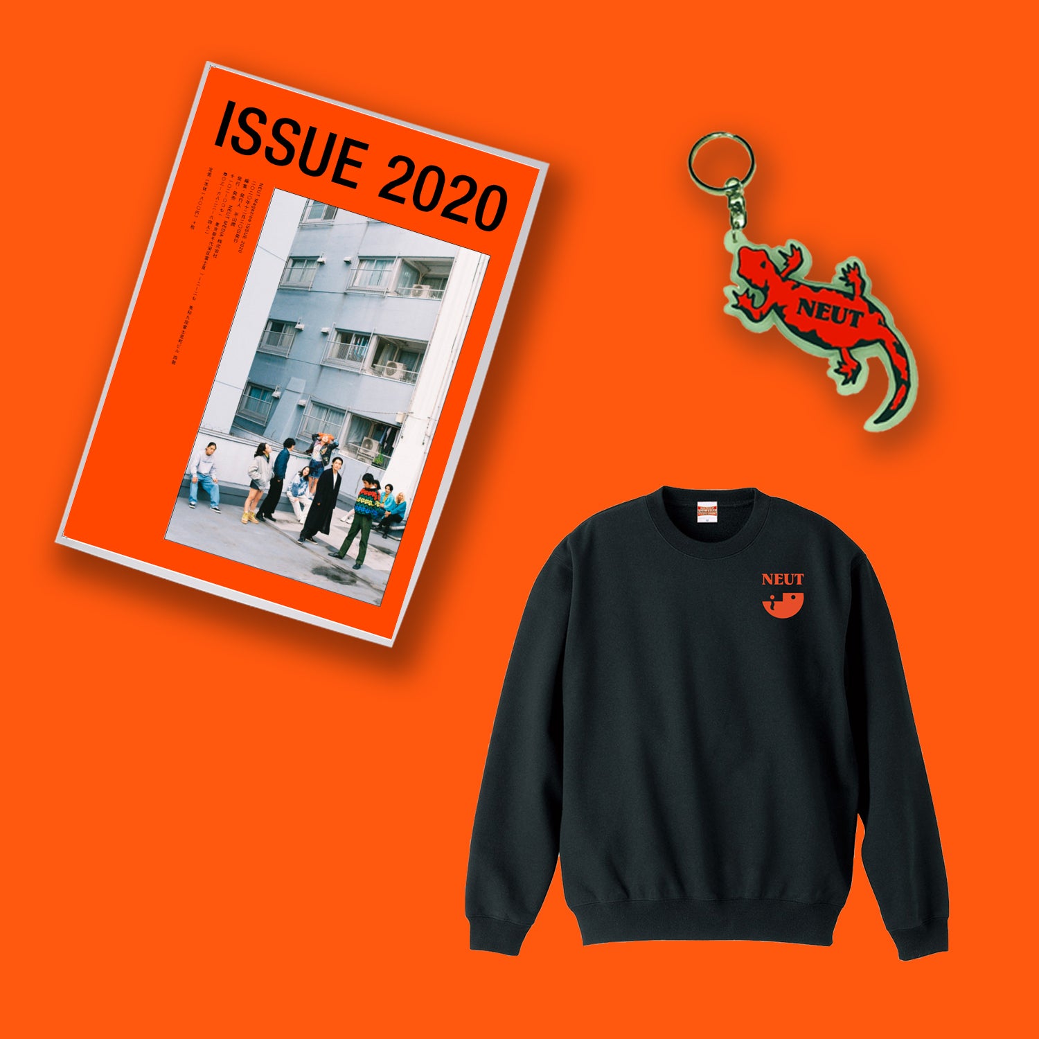 雑誌「NEUT Magazine ISSUE 2020」とNEUTアイコンのイモリの「蓄光ラバーキーホルダー」のセット。先着50名限定で雑誌単体と同じ価格でキーホルダーもついてくるお得なコースです。