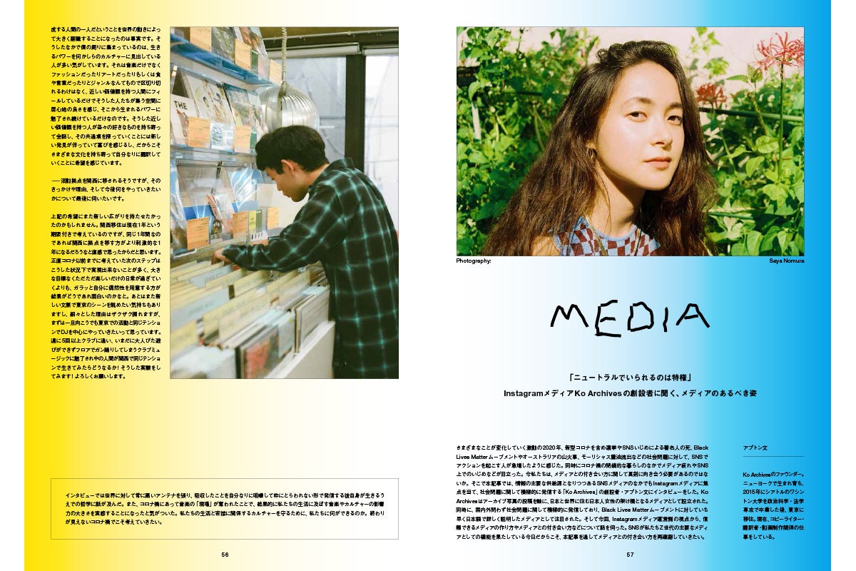 そんな悲惨なことが多かったけれど、大切な気付きをたくさん与えてくれた2020年を、みんなの部屋の本棚に置いてふとしたときに思い出すきっかけになってくれたらいいなと思い、今年のNEUTの記事や今回のために新しく作ったコンテンツなどを特別に雑誌という“流れていかないもの”にすることを決めました。