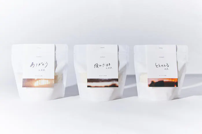 「ありがとうのお米」は、ふっくらとした食感でやさしさや愛情を表現し、「疲れた時のお米」は、GABAの豊富な胚芽米で疲れを癒し、「ととのえるお米」は、雑穀米や玄米などのブレンド米で健康をサポートします。