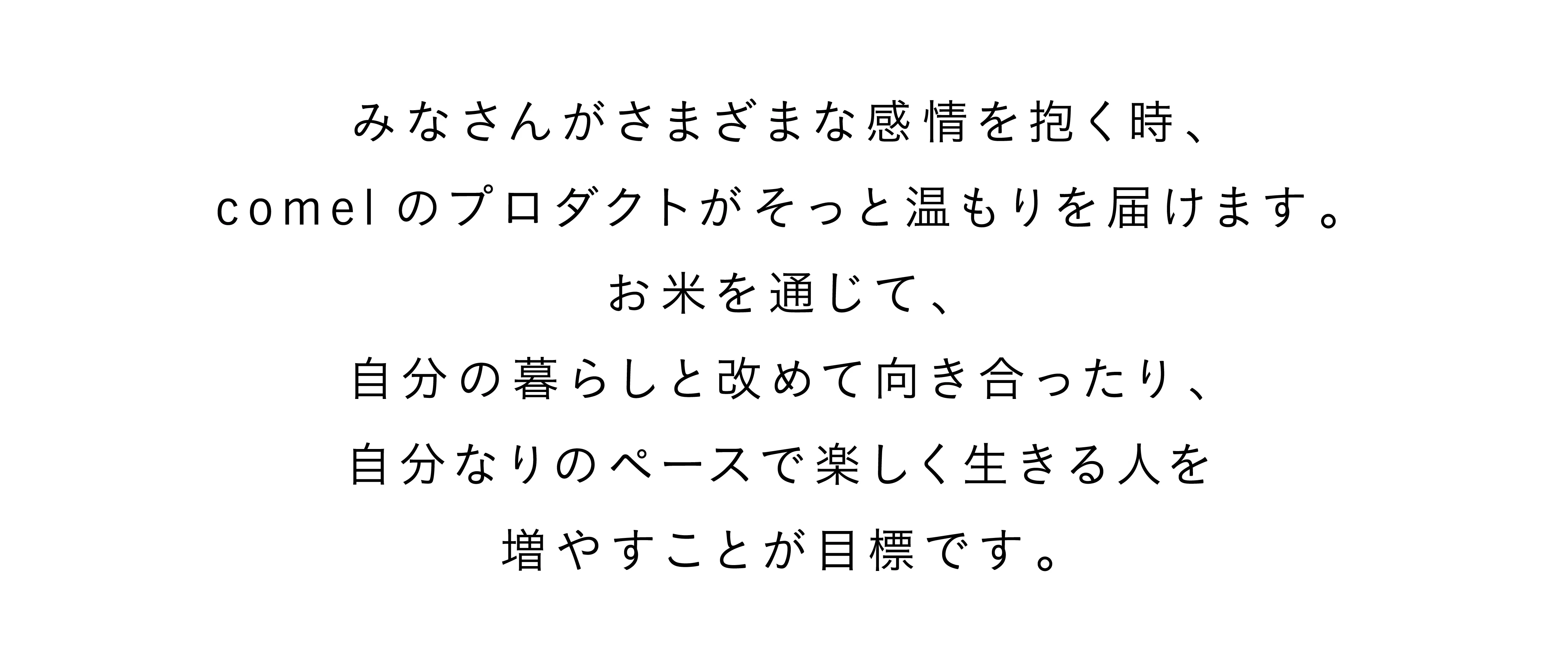 「お米で暮らしに温もりを」というコンセプトを掲げるcomelは、リアルの場でもみなさんの心に温もりを届けていきたいと思っています。