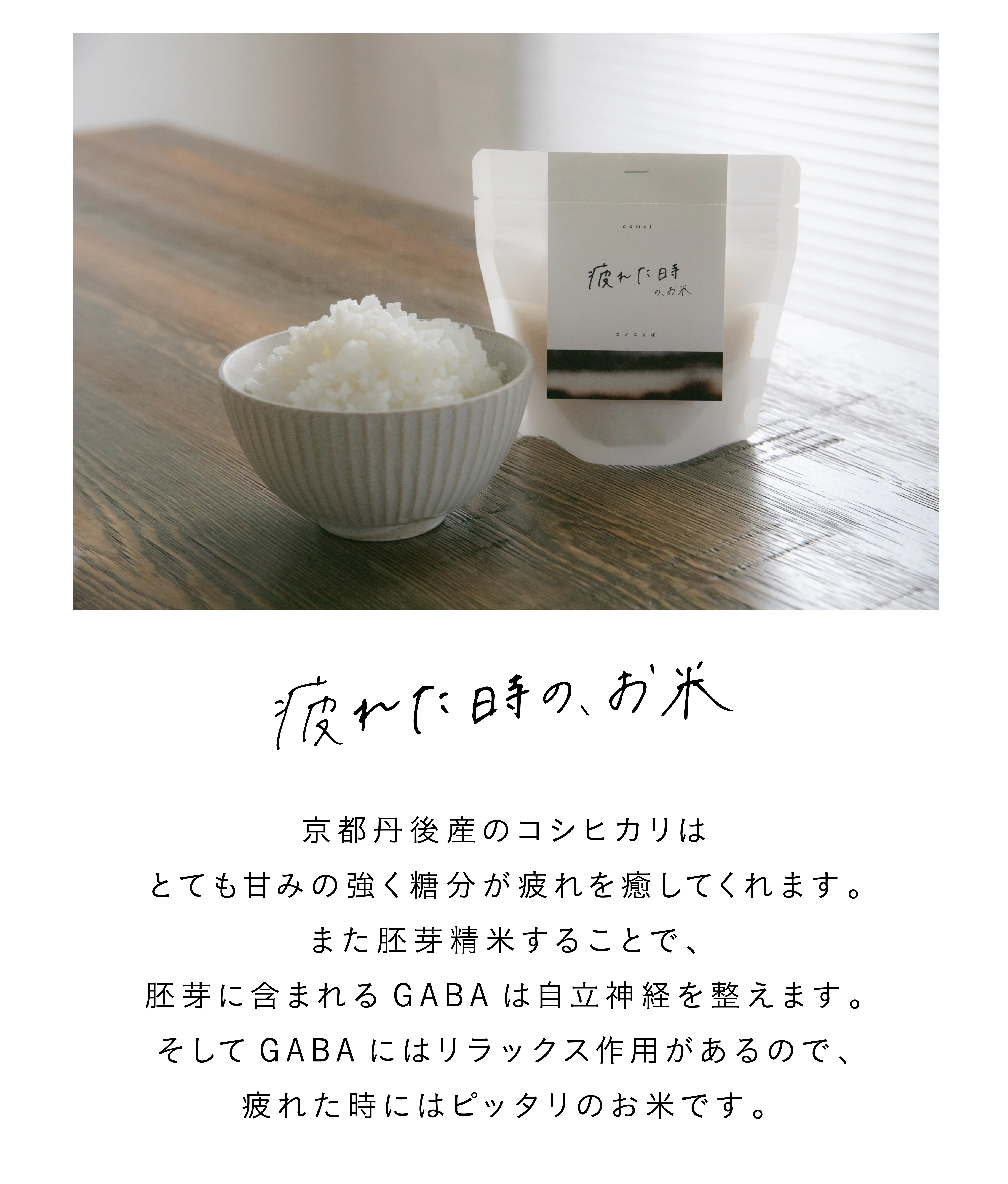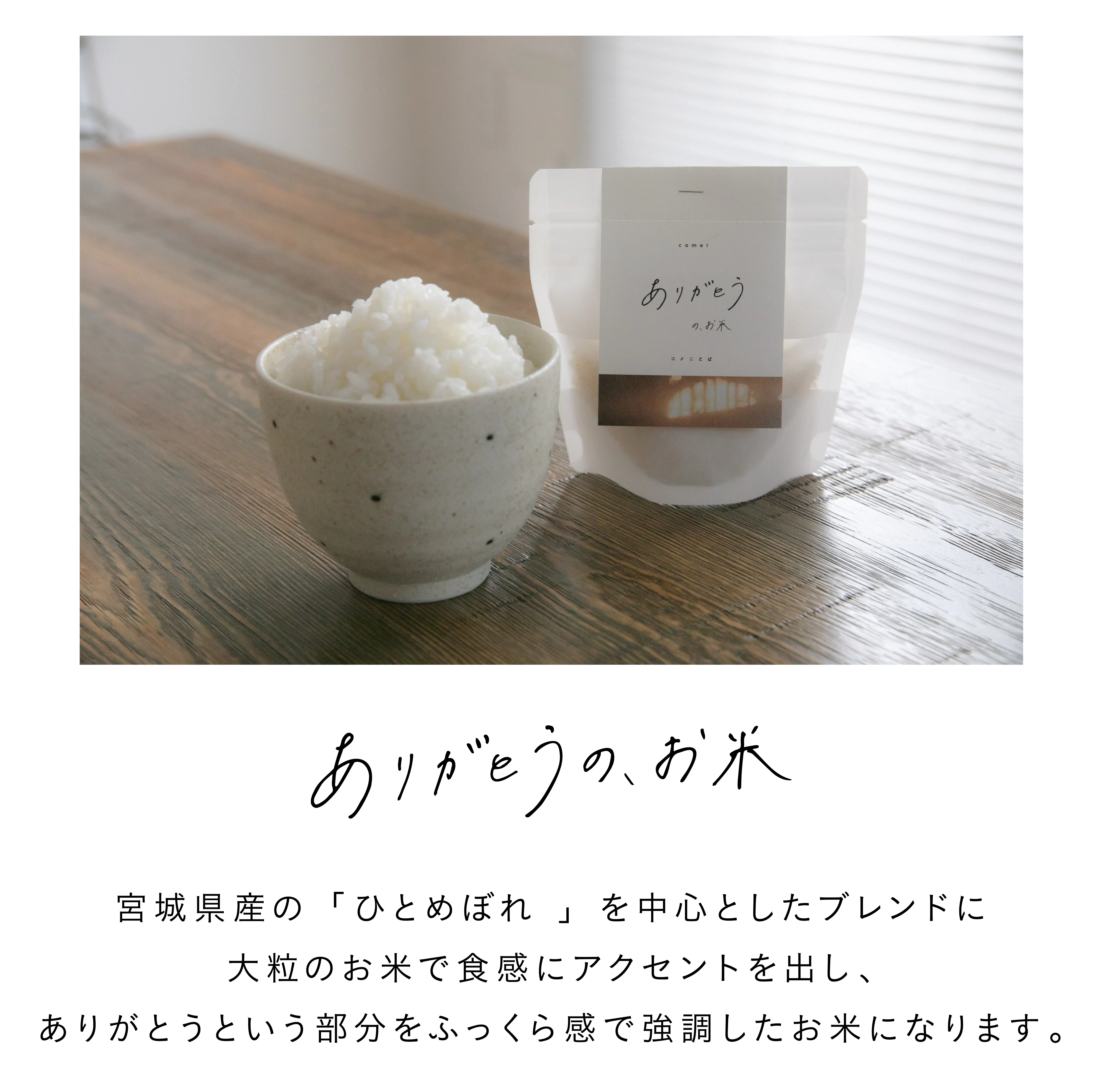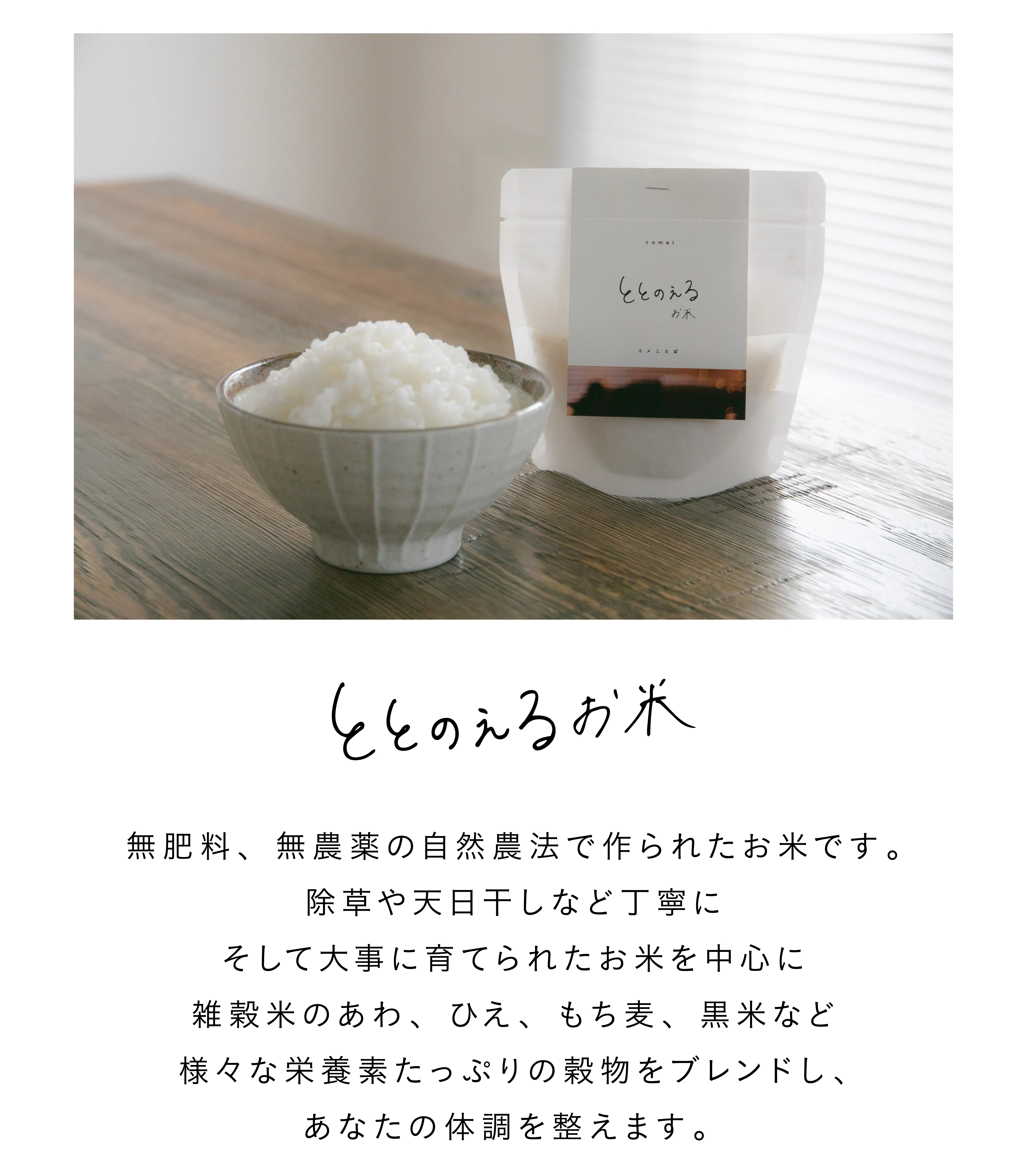 いろんなお店がある中で、なぜcomelを選んでほしいか、という話ですが、それはわたしたちのお米だけにある“温かさ”に誇りを持っているからです。
